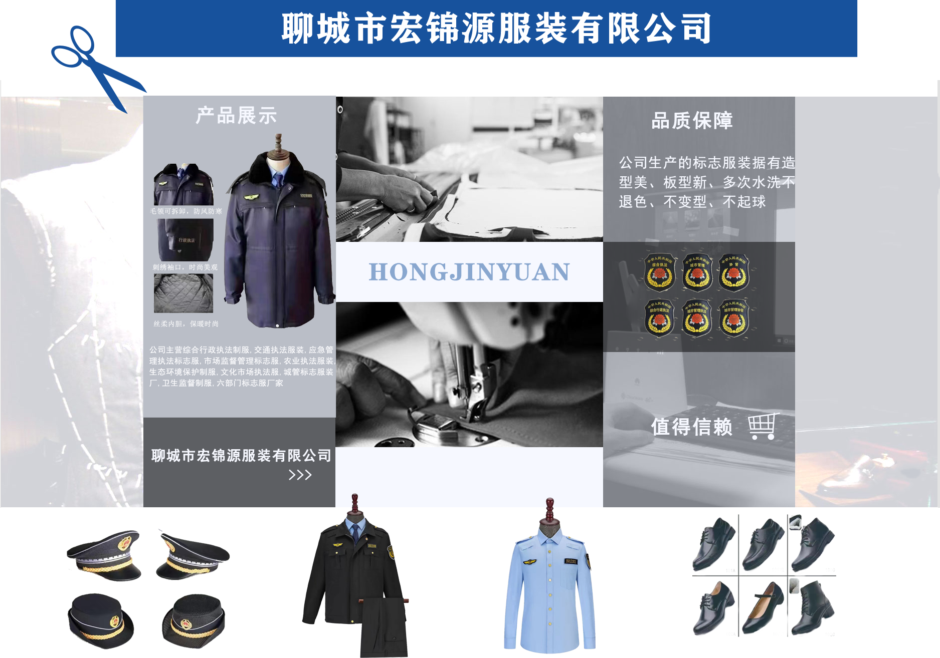聊城市宏錦源服裝有限公司位于江北水城—山東聊城,地理位置優(yōu)越,交通便利。公司主營(yíng)綜合行政執(zhí)法制服,交通執(zhí)法服裝,應(yīng)急管理執(zhí)法標(biāo)志服,市場(chǎng)監(jiān)督管理標(biāo)志服,農(nóng)業(yè)執(zhí)法服裝,生態(tài)環(huán)境保護(hù)制服,文化市場(chǎng)執(zhí)法服,城管標(biāo)志服裝廠,衛(wèi)生監(jiān)督制服,六部門(mén)標(biāo)志服廠家等,值得信賴! 公司生產(chǎn)的標(biāo)志服裝據(jù)有造型美、板型新、多次水洗不退色、不變型、不起泡。 “認(rèn)真辦事,踏實(shí)做人”是宏錦源的企業(yè)精神,我們的宗旨是:“用服務(wù)與真誠(chéng)來(lái)?yè)Q取你的信任與支持,互惠互利,共創(chuàng)雙贏!”我公司愿與國(guó)內(nèi)外各界同仁志士竭誠(chéng)合作,共創(chuàng)未來(lái)企業(yè)目標(biāo):在已選定的服飾領(lǐng)域中,成為行業(yè)的卓越者。 經(jīng)營(yíng)理念:追求產(chǎn)品卓越,為用戶提供完美、高效的服務(wù)。...